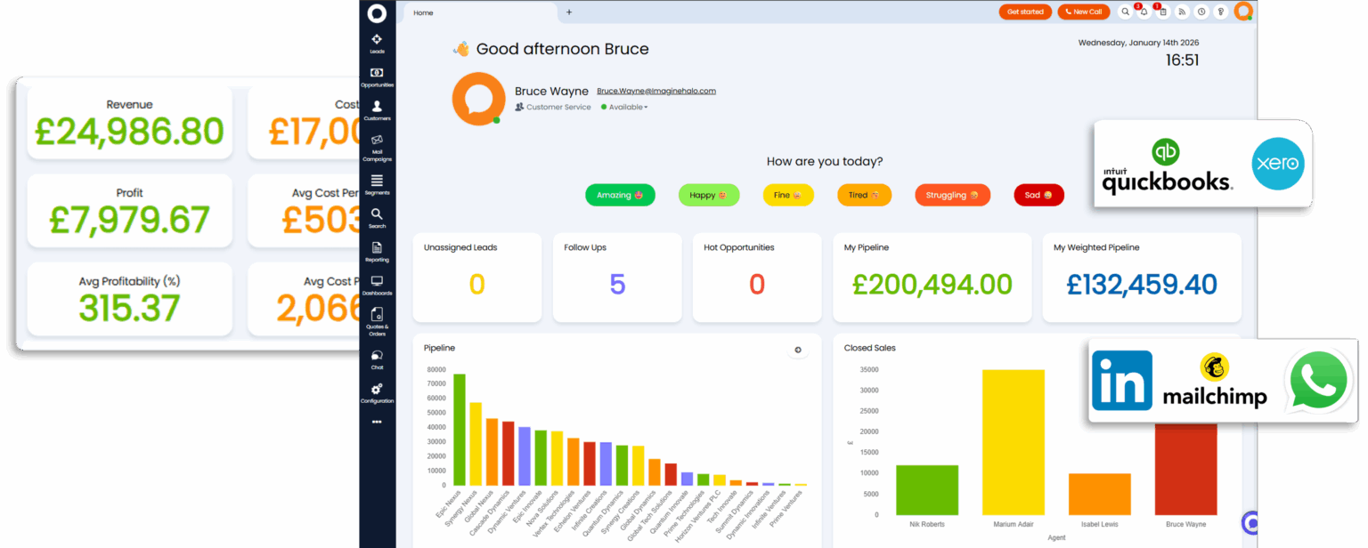 HaloCRM lets you provide support anywhere, keeping customers happy and connected through email, text, chat, voice, and more.